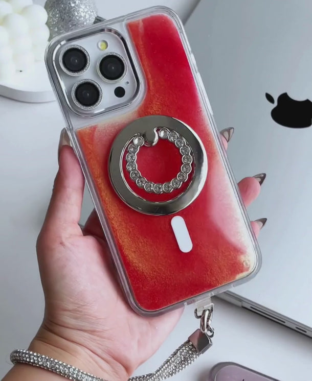 Protective MagSafe case with cascading glitter confetti that moves with you and makes a statement!