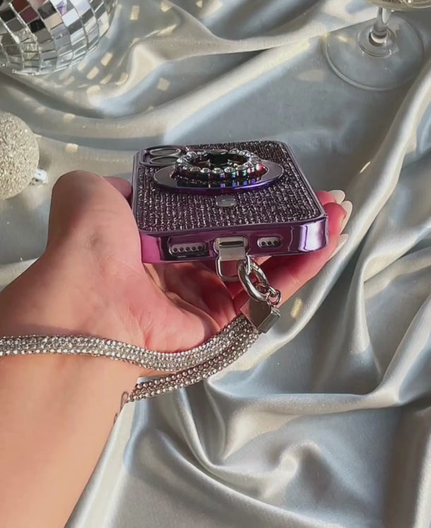 Metallic MagSafe phone case adorned with crystals that adds sparkle to your device and steals the spotlight!