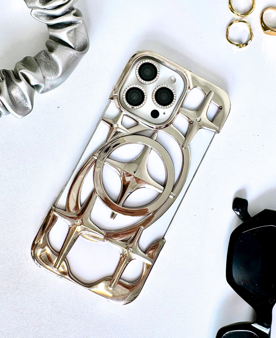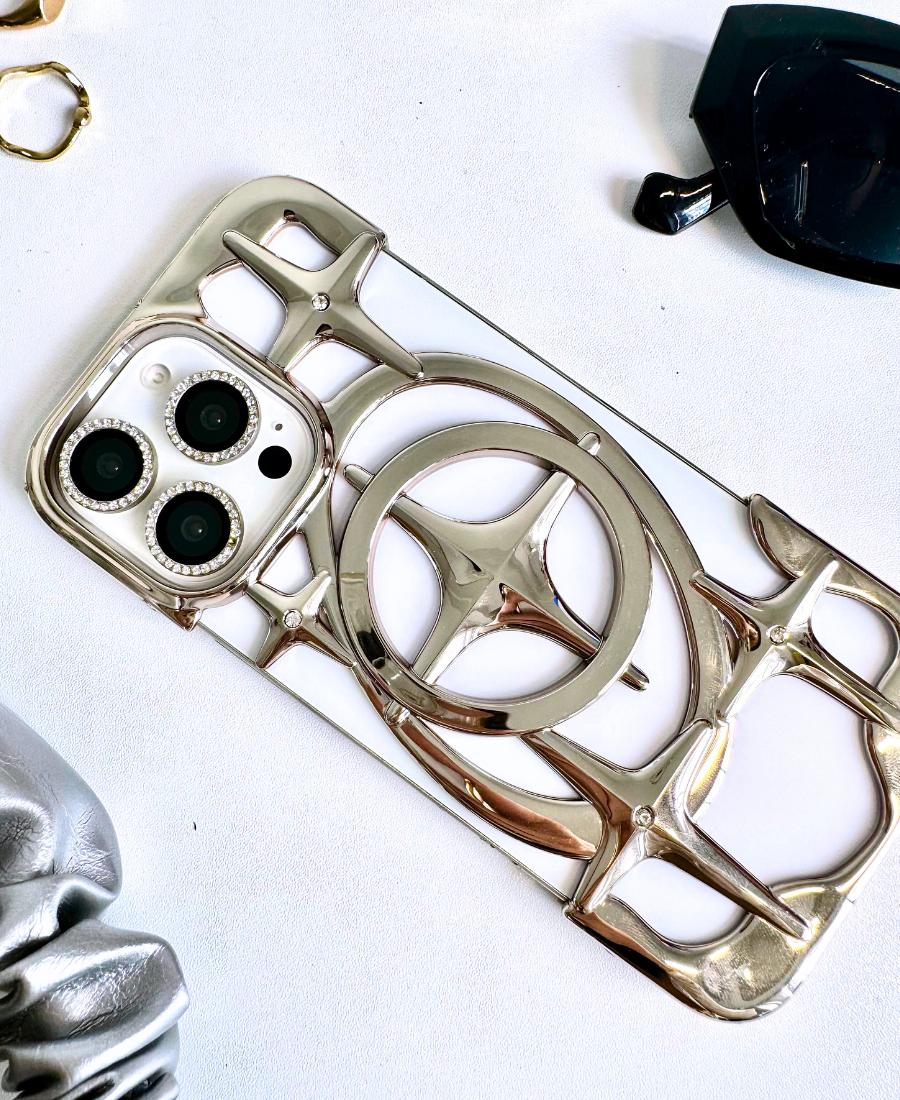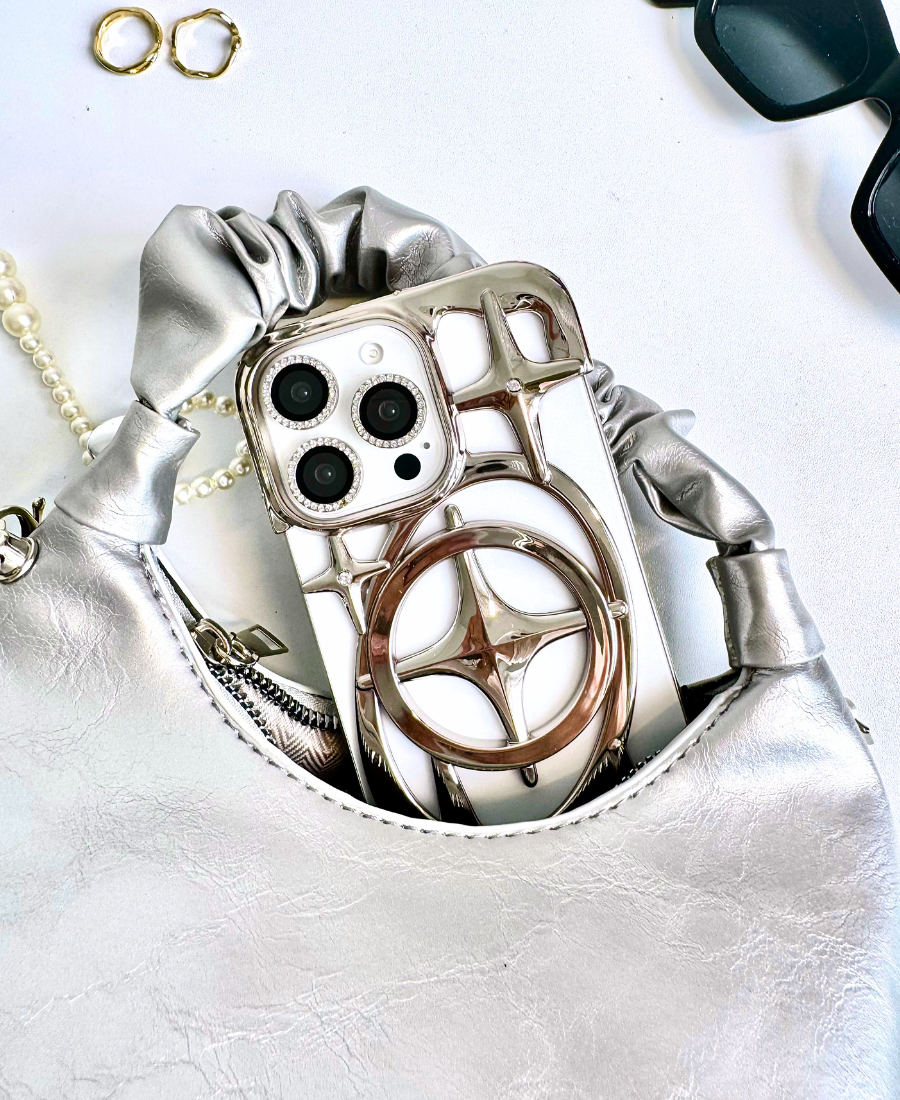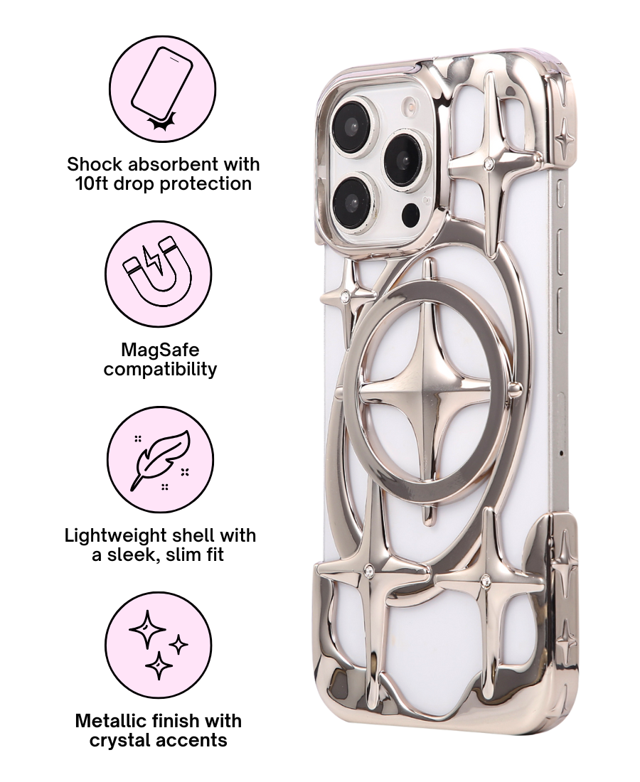 Say goodbye to bulky, boring cases! New MagSafe Bumper Case with a minimal one-of-a-kind design that showcases your iPhone without sacrificing protection. Featuring a pearlescent finish and crystal detailing to steal the spotlight!