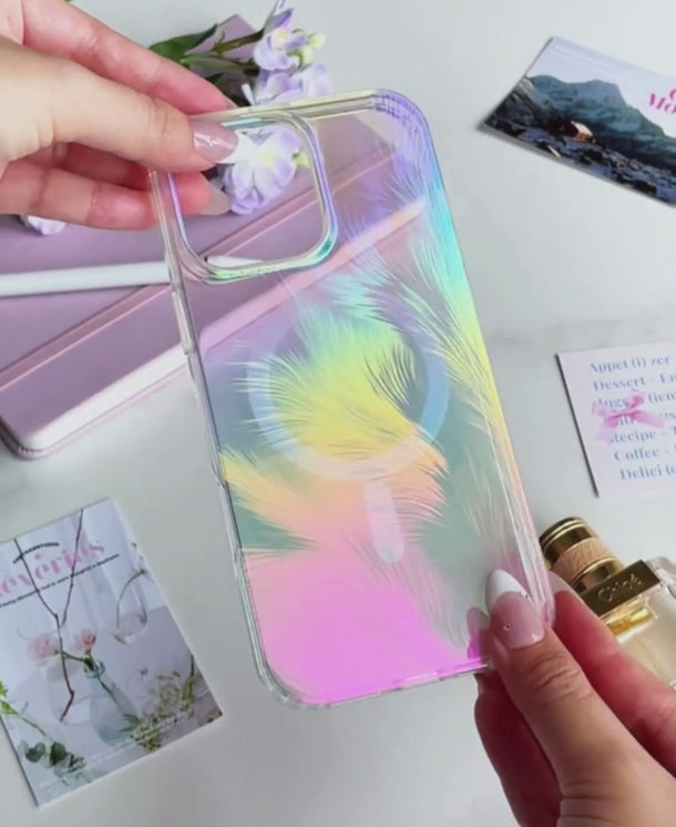 Must-have accessory to add flair and function! Provides drop protection, hands-free convenience and extra security to hold onto your phone. With the prettiest iridescent beads that change colors as the bracelet reflects with the light!