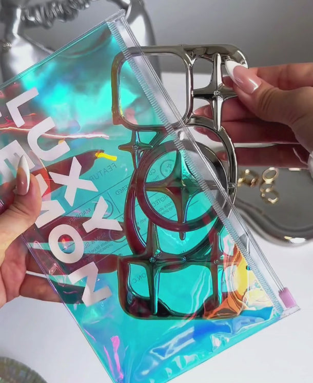 Say goodbye to bulky, boring cases! New MagSafe Bumper Case with a minimal one-of-a-kind design that showcases your iPhone without sacrificing protection. Featuring a pearlescent finish and crystal detailing to steal the spotlight!
