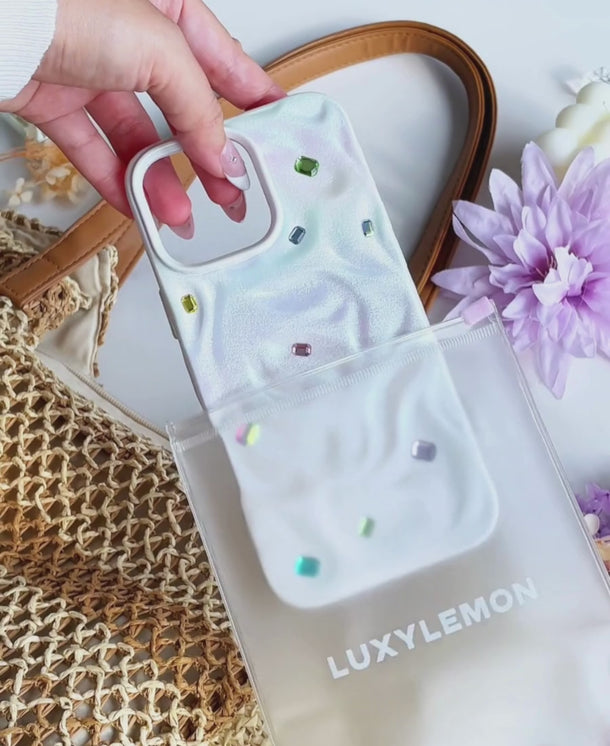 Protective MagSafe case with a metallic finish and adorned with colorful gems that makes a statement!